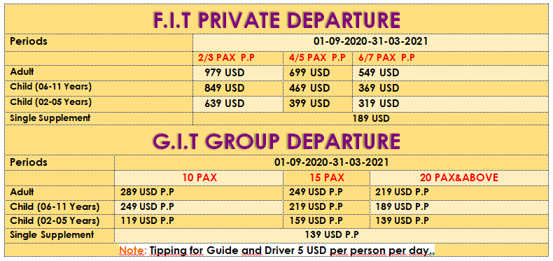 Min-Max Travellers :2 - 30 Pax