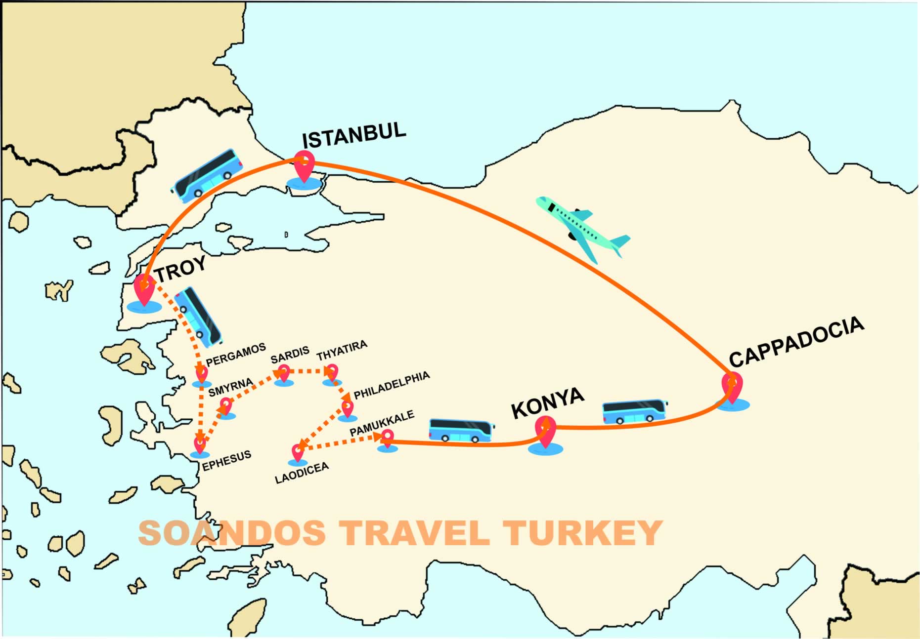 After bireakfast,drive to Pergamon and north to the hauntingly beautiful Pergamon. Among the impressive structures of this city, dating from 299 BC, we will see the Trajaneum, Altar of Zeus, Temple of Dionysus, Theater and the 200,000 volume library which was surpassed only by that found in Alexandria at the time. The Asclepieum of Pergamon was a famous health center where methods of treatment included blood transfusions, music therapy and meditation.We will finish our day with a visit the archaeological remains of the ancient city of Smyrna. Smyrna was one of the Seven Churches that the Apostle John relays the promise from God: “Be faithful until death, and I will give you the crown of life”.Then visit the Church of St. Policarp in Izmir. Overnight in Izmir.